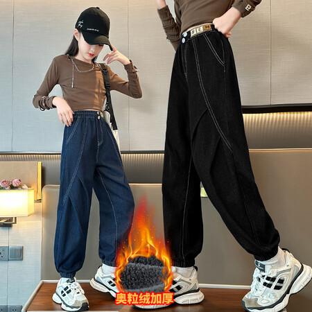 w*8下载视频“Q8810款加绒前喷白牛仔阔腿裤”