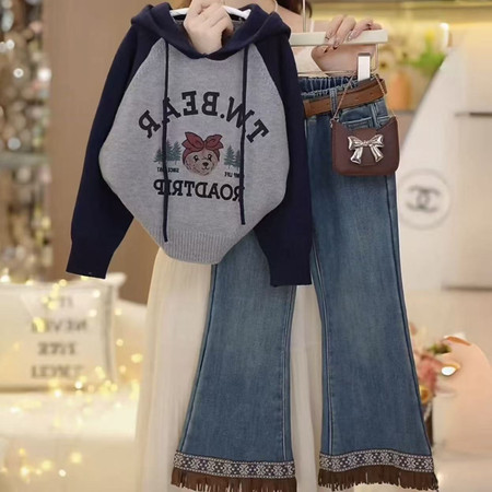 1*9将商品“卡通小熊插肩袖连帽毛衣套装”发布到淘宝